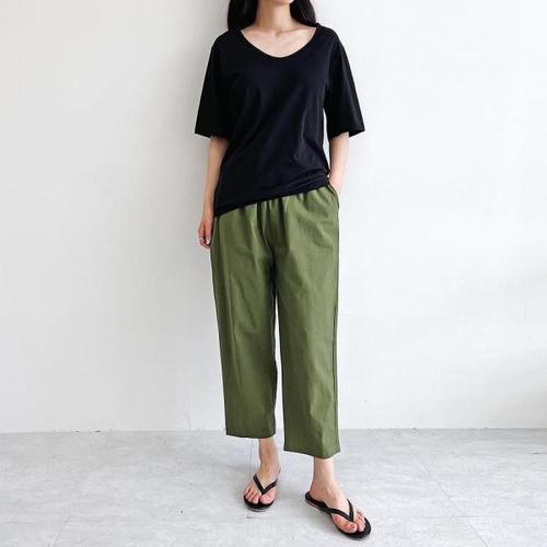 여성 HI87PR30 2컬러 허리밴딩 배기팬츠 시원한 소재 일자 조거