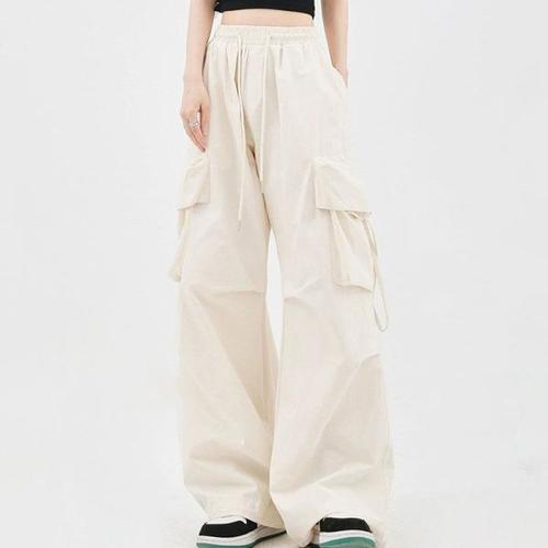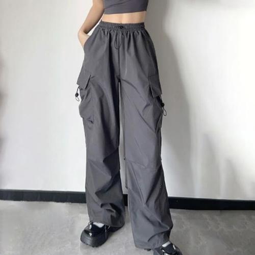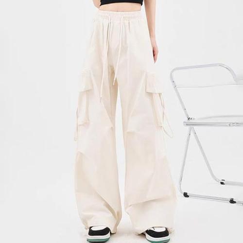 캐주얼 빈티지 봄 팬츠 여자 패치 블루종팬츠 솔리드 밴딩 와이드핏 슬림핏 허리 모시 배기팬츠 원픽1