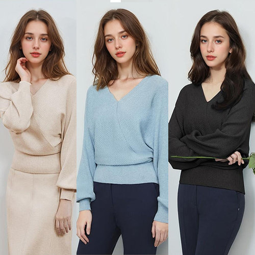 야미니트 비스코스 랩 블라우스 니트 3종세트