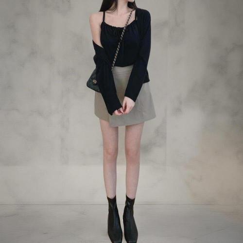 [다잇템]여성 탱크 슬리브리스 스트랩 카디건 세트