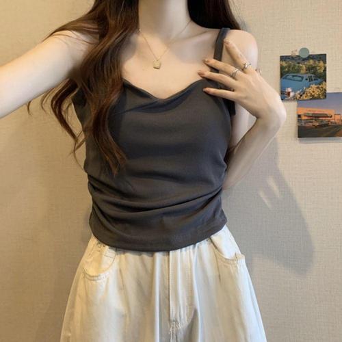 엘럽 여성 이너 민소매티 어깨끈 솔리드 나시 빅사이즈 셔링 슬림 박템5