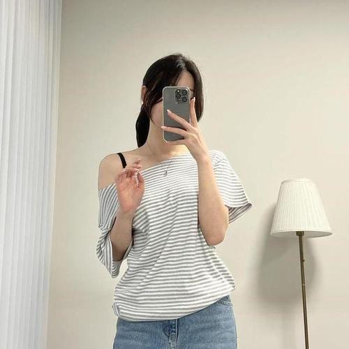 [다잇템_패션]여자 반소매 단가라 줄무늬 빅사이즈 티셔츠