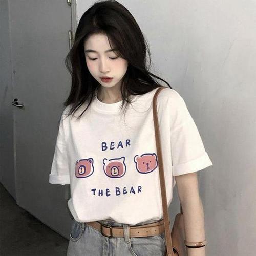 [다잇템_패션]여성 빅사이즈 반소매 필기체 베어 티셔츠_4