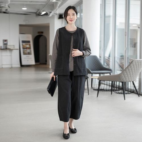 [애비뉴투지]담 누빔 기모 천연염색 퀼팅 솜 겨울 개량한복 생활한복 상하조끼 3종세트 남여공용 H02542