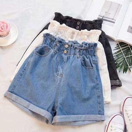 [에이치플러스몰]투버튼 여성용 진 숏팬츠 밴드라인청반바지 컴포트