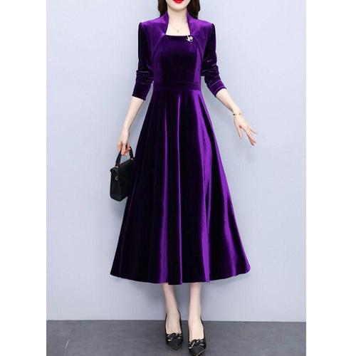 여성 겨울 벨벳 스퀘어넥 슬림핏 플레어 롱 원피스 WFL8WM6