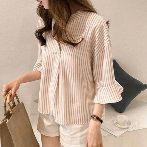 봄 여름 긴팔 셔츠 여성 캐주얼 세로 줄무늬 루즈핏 셔츠 여성 외출용