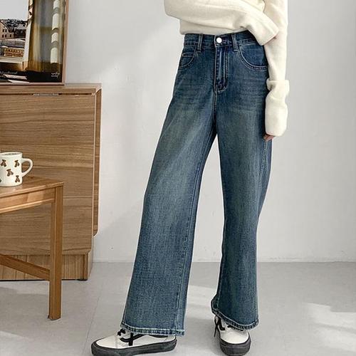 [브리치] / (노컷진19탄) 여성 밴딩 워싱 스판 일자 배기핏 청바지
