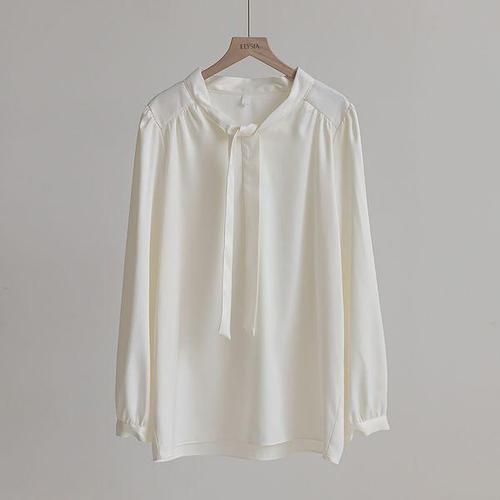 [엘리시아]더피 실크 셔링 타이 블라우스