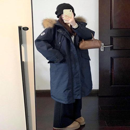 [앞머리]웨어러블 리얼 라쿤 퍼 패딩내피 탈부착 후드 롱 야상
