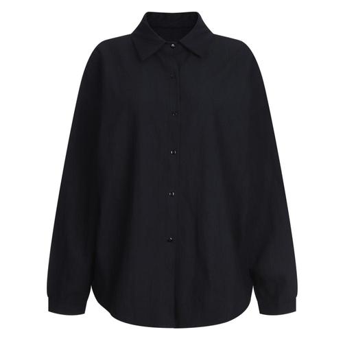 여성 카라넥 3컬러 루즈핏 무지 긴팔 면100 셔츠 EGG-WBL-20772-네이비