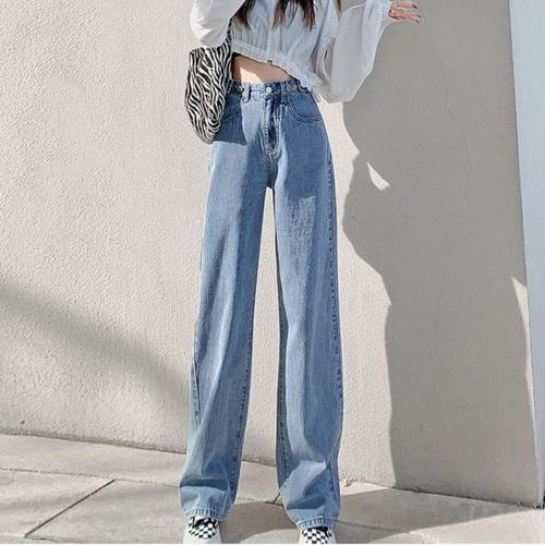 [에이치플러스몰]하이웨스트 와이드 일자핏 데님팬츠 빈티지 연청바지