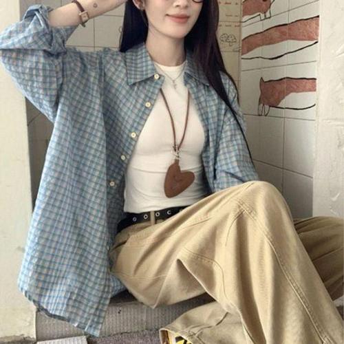 [에이치플러스몰]걸스 체크패턴 오버실루엣 스테디 복고 캐주얼셔츠 와이셔츠카라셔츠 세련된