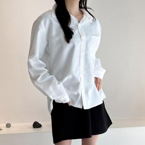 여성 봄 트렌드 1컬러 루즈핏 포켓 와이셔츠 LK-S008