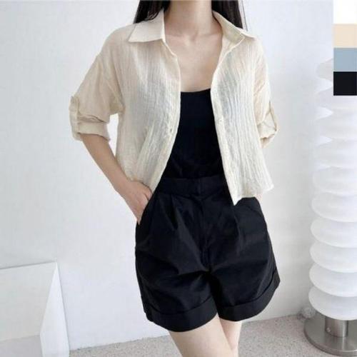 여자 S/S 순면 와이셔츠 1P 세미크롭 장팔 와이셔츠 바캉스룩 아사면 WFLF3NK
