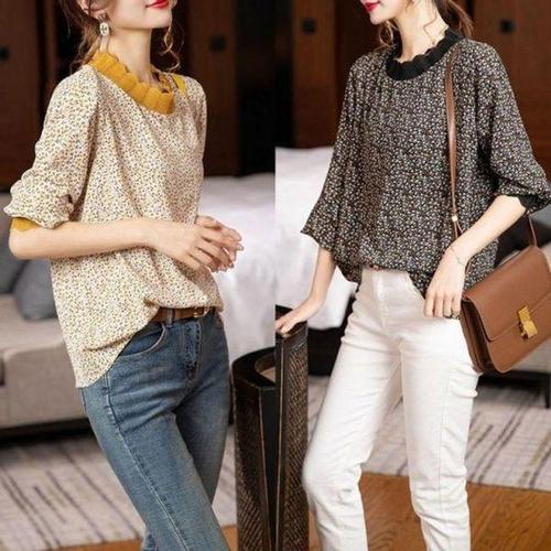 [에이치플러스몰]잔 플로럴프린트 루즈핏 핏감 와이셔츠 로맨틱 이쁜 여성용 올데이탑 여성용 면접 브라..