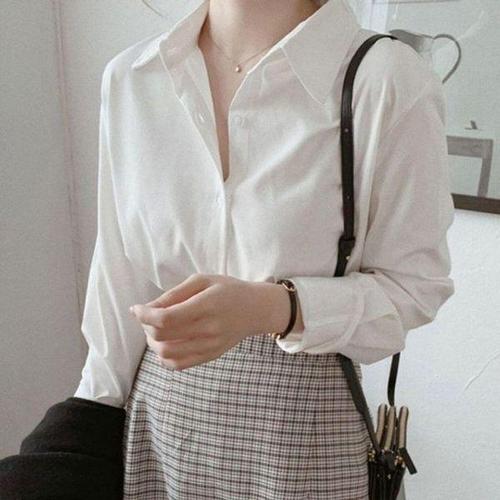 [에이치플러스몰]롱슬리브 와이셔츠 와이셔츠 상의 여성용 걸스 스프링 폴시즌 일상용 솔리드 일상베스트..