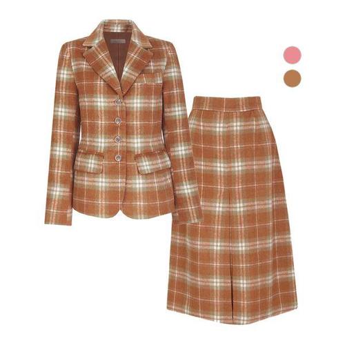 [비비드 시크릿가너]SET 여성 겨울 타탄체크 정장 울 자켓+스커트 세트