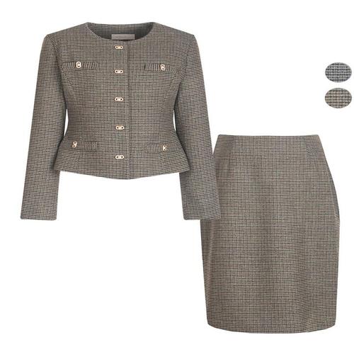[비비드시크릿가너]SET 여성 모던 체크 겨울 정장 울자켓+스커트 세트