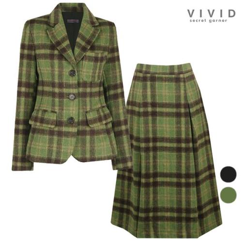 [비비드시크릿가너]SET 여성 겨울 타탄체크 정장 울 자켓+스커트 세트
