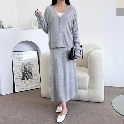 [신상오픈런]|KMD189D|레젤르 치마 세트 스웨터 미니멀 베이직핏 긴 가디건 여성_18162081_597559