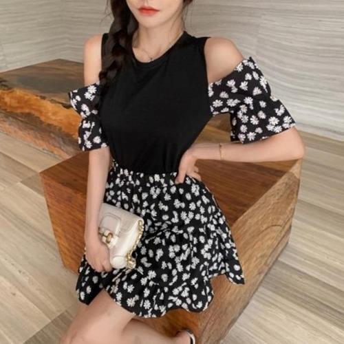[신상오픈런]|CMD1B73|리커프 치마 세트 여성 썸머 오프숄더 꽃 스프링 투피스_18317805_597559