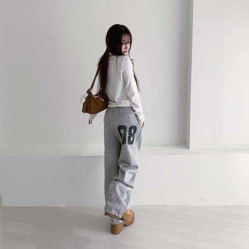 [다잇템][다잇템] 여자 트랙수트 필기체 추리닝 보온 와이드핏 바지_23961810_588872