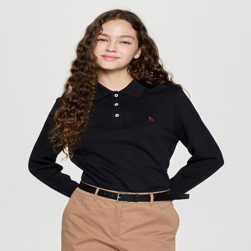 헤지스 여성 [아이코닉] 클래식핏 더블페이스 긴팔 폴로셔츠 블랙 (HSTS5DC81BK)
