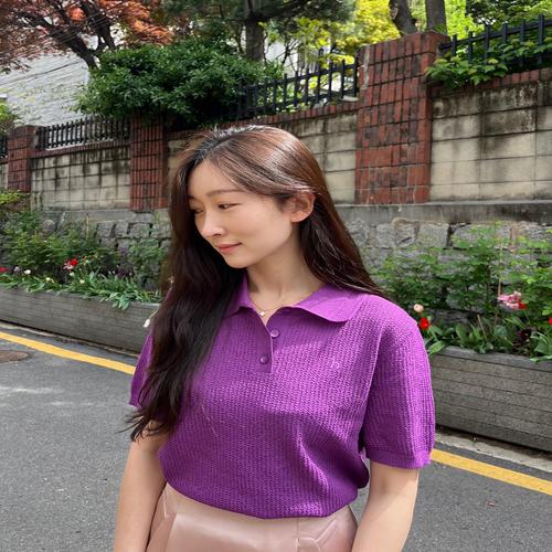 헤지스 여성 강연 반소매카라 풀오버 퍼플 (HSSW5B406U2)