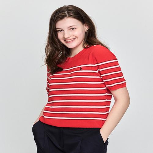 헤지스 여성 스트라이프 강연 셋업 반소매풀오버 오렌지 (HSSW5BC52O2)