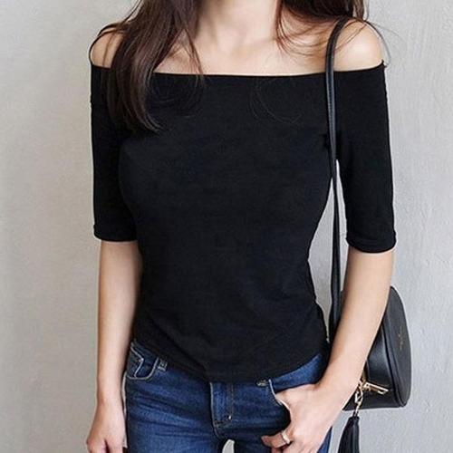 [엄지척]여성 어?라인 오픈숄더 7부 소매 입술 넥티셔츠_19610362_667501