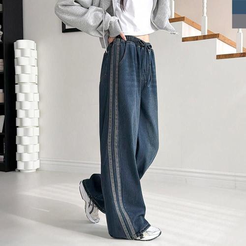 타임퓨어 여성 기모 밴딩 오버핏 배기청바지 데님 팬츠 빅사이즈 데일리 청바지 겨울 여자 와이드 9부청바지 스판 보온과 패션을 겸비