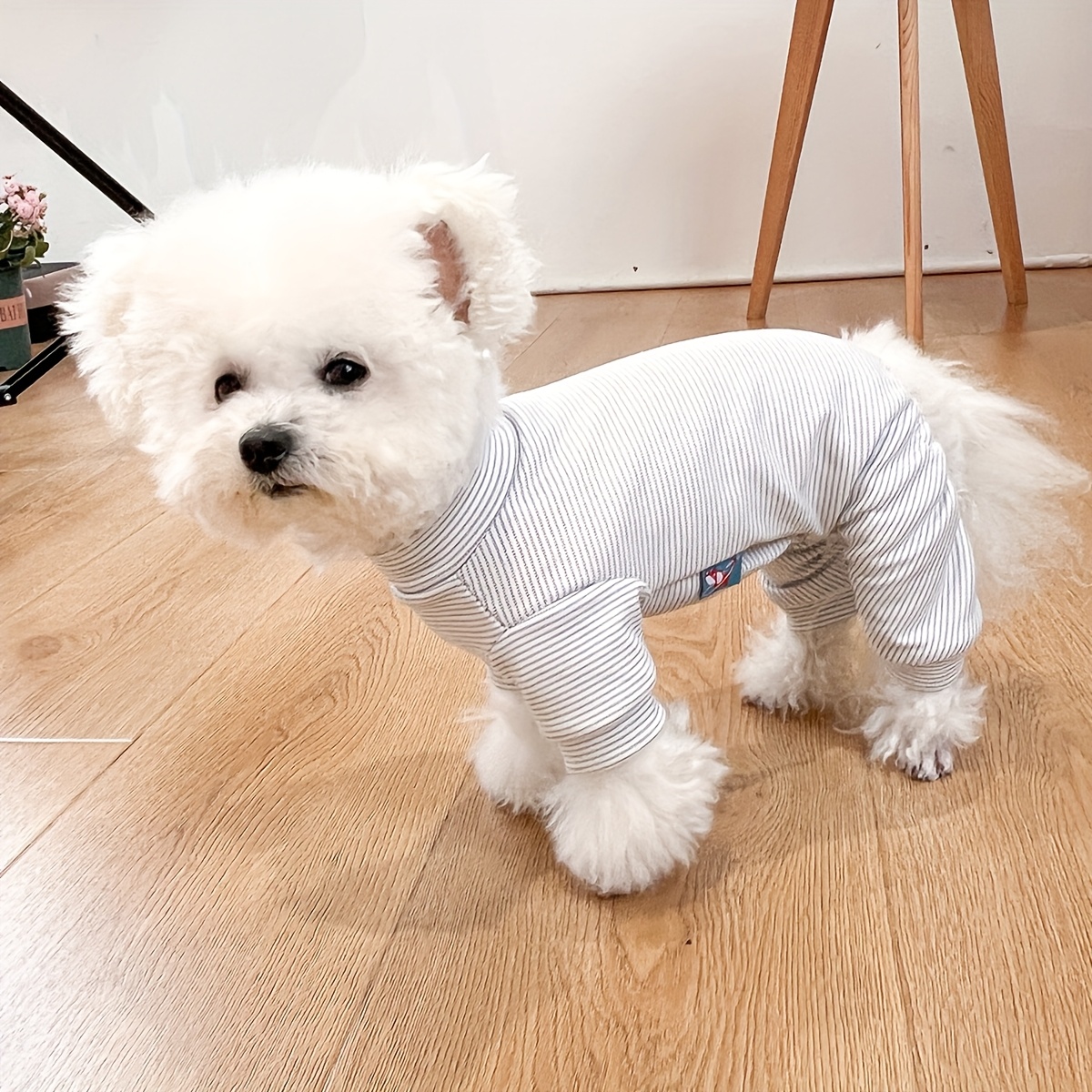 TEMU 소형견 겨울 옷 - 소매와 배 보호 기능, 4족 커버리지, 포메라니안/비숑/시츄용 부드러운 따뜻한 풀오버 코트, 추위 방지 애완동물 의류, 세로 줄무늬 디자인, 안전한 겨울복