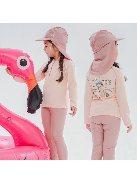 [아이스샌드](의정부점)키즈 유아 여아동 래쉬가드 플랩캡 수영복세트 BR-355106