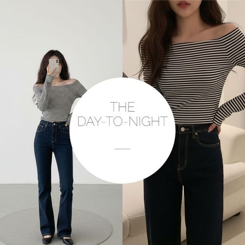슈팅스타 / 오프숄더 스트라이프 크롭 티셔츠