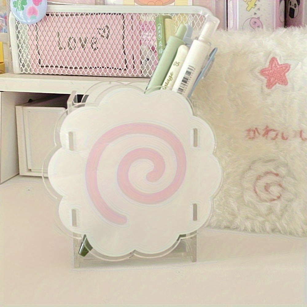 TEMU 1개 여아용 귀여운 파스텔 핑크 데스크 정리함 - 펜 슬롯 및 메이크업 브러시 홀더 포함, 학생용 컴팩트 데스크탑 정리함 & 화장품 보관함 - 사무실, 화장대용 장식 스테이셔너리 트레이