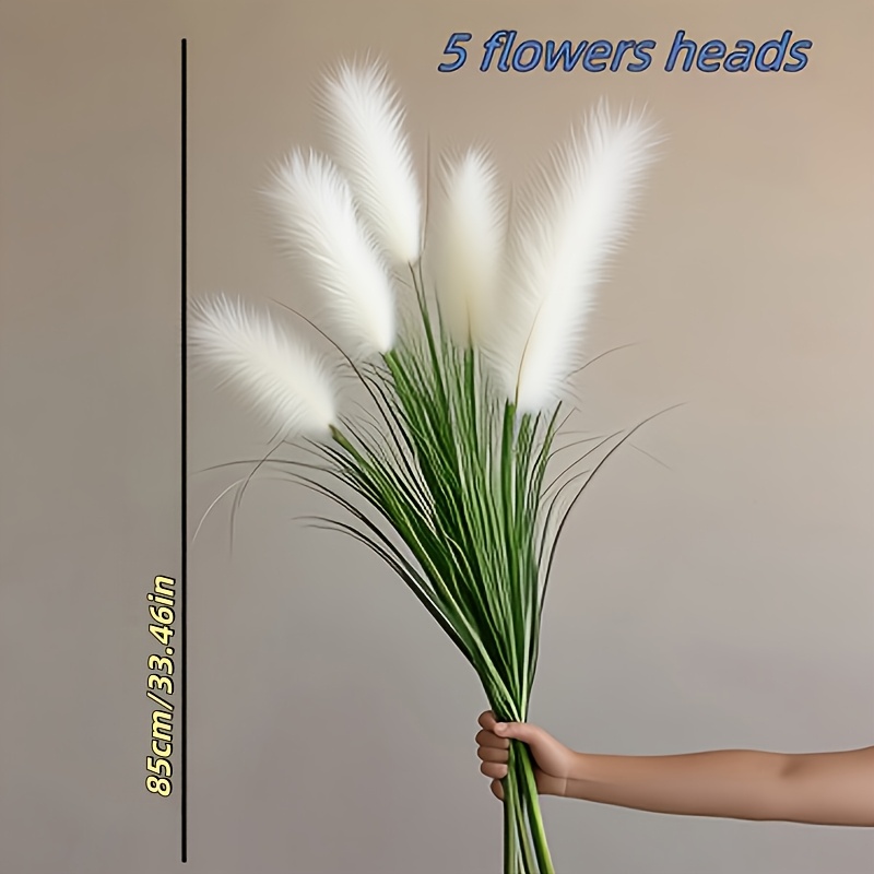 TEMU 5 흰색 꽃 머리 갈대, 현실적인 인공 여우 꼬리풀 식물, 90cm 35, 43인치 높이 갈대, 인공 갈대 및 여우 꼬리풀 녹색 잎 버시, 유지 관리 없음; 가정 실내, 사무실, 포ーチ 및 정원 장식에 적합 - 모든 계절, 결혼식, 기념일 및 휴일 장식, 실내 및 실외 사용, 화분 미포함