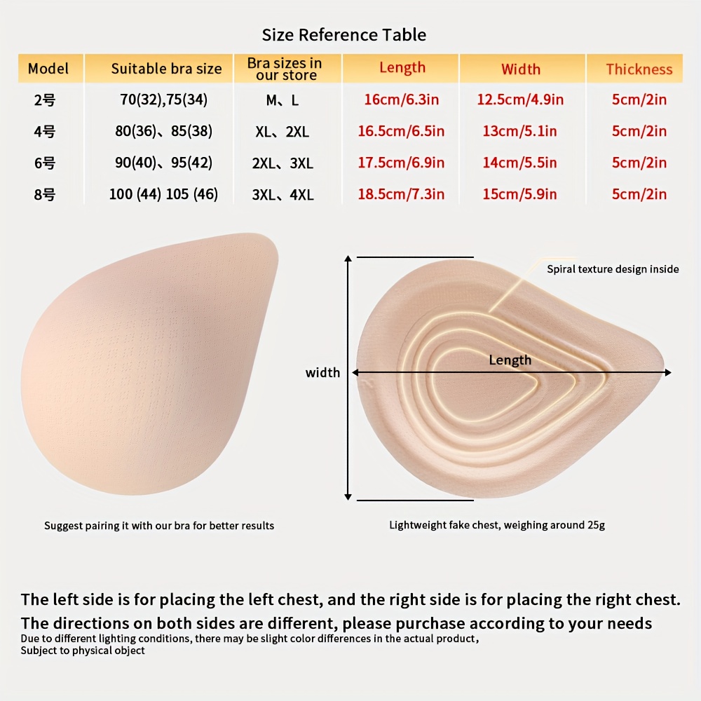 TEMU 유방 보형물 패드 편안하고 통기성 좋은 부드럽고 두꺼운 대형 사이즈 유방절제술 후용 보형물 속옷 여성용 나선형 유방 패드 인서트 포함