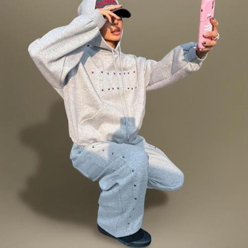 여성 고무줄 필기체 바지 후드티와 리벳 세트