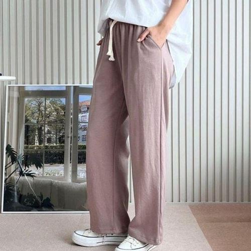 [에이치플러스몰]여성용 베이직라인 통 와이드핏 트렌드 데일리룩 고무줄베이직 바지 레이디 컴포트 하의..