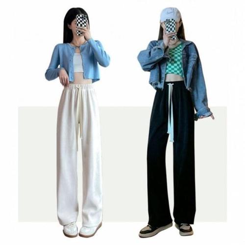 [라일리여성의류] Rly 걸 무문양 연출 일상바지 옆트임 고무줄 통 팬츠