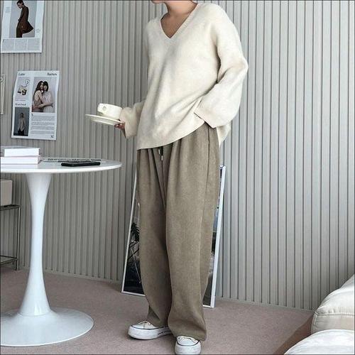 [에이치플러스몰]안감 밴딩 골덴 기모 여자 겨울 일자팬츠 따뜻한 바지