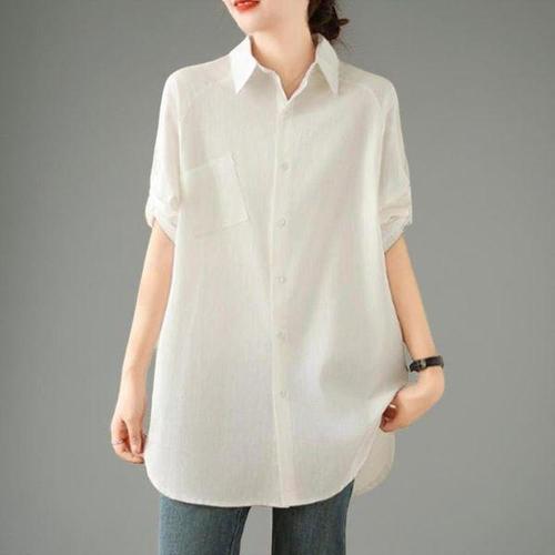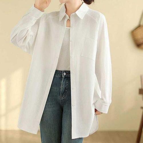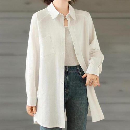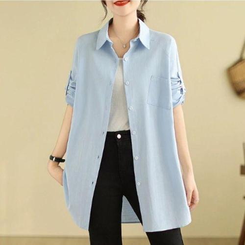 가을 여름 빅사이즈 롱셔츠 카라 화이트 면남방 자켓형 A라인 엄마옷 중년여성 7부블라우스