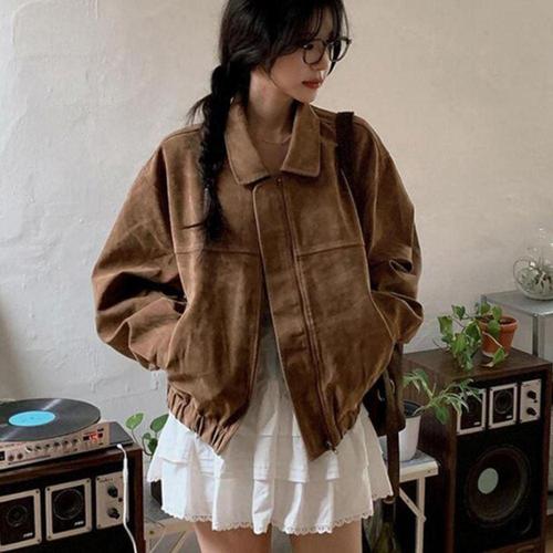 여성 스웨이드 점퍼 빈티지 무드 루즈핏 봄가을 캐주얼 자켓 WFL909R