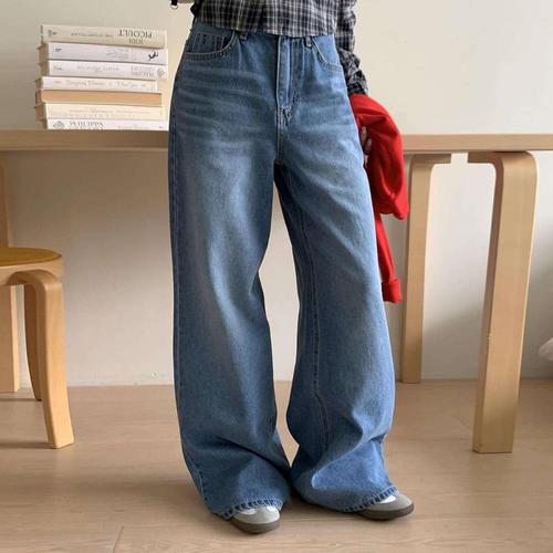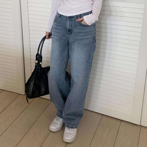 [옷자락]여자 와이드핏 일자 워싱 히든밴딩 대디핏 청바지