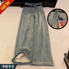 (완전 추천) 날씬해보이는 여성 빈티지 워싱 기모 와이드 데님 팬츠 가을 겨울 편한 트렌드 하이웨이스트 일자 롱 통바지 도톰한 따뜻한 블루 클래식 심플 예쁜 데일리 청바지