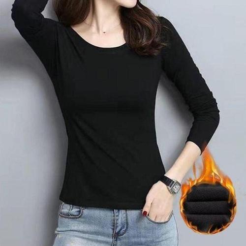 [셀러허브_여성트랜드패션]여성 U넥 라운드넥 스판 긴팔 기모 티셔츠 레이어드티