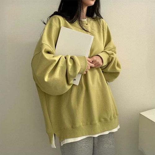 [셀럽하우스]루즈핏 ZAPJ0011 레이어드 기모 맨투맨 티셔츠 라운드넥