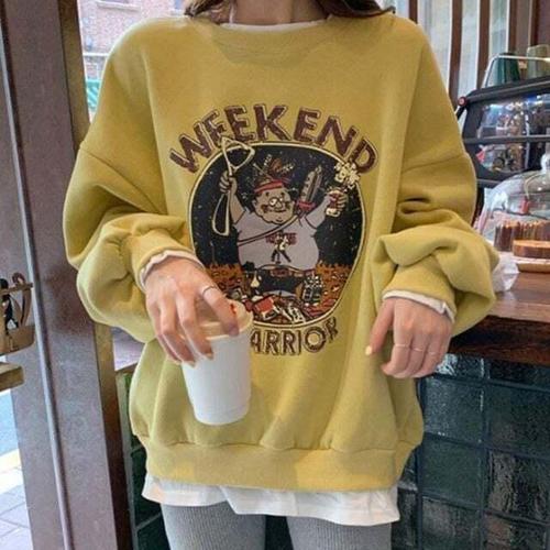 [셀럽하우스]레이어드 KEQH7970 맨투맨 프린팅 라운드넥 기모 여유핏