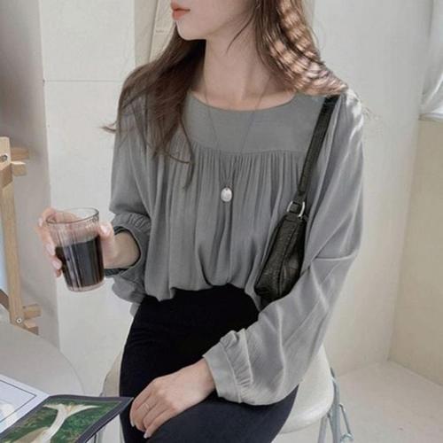 [라일리여성의류] Rly 와이드넥 롱셔츠 셔츠 시폰 주름 컴포트세련된 걸